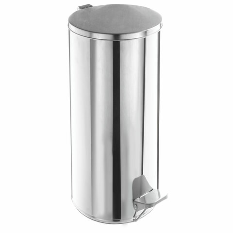 Ведро для мусора с педалью, УСИЛЕННОЕ, ТИТАН, 30 литров, кольцо под мешок, нержавеющая сталь, хром