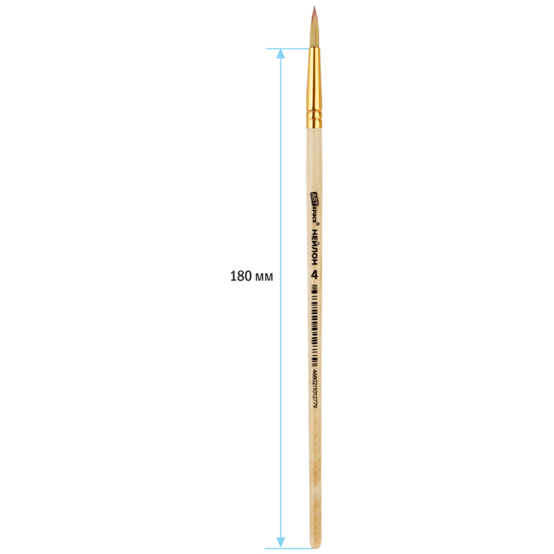 Художественная кисть ArtSpace из нейлона - это недорогой вариант для школьников, где редко пользуются акрилом и маслом, чаще гуашью и акварелью. Она идеальна для начинающих художников, поэтому их часто используют в детских образовательных учреждениях. Кисть круглой формы с короткой ручкой из дерева также подходит для малышей. <br/>• Волос: нейлон; <br/>• Номер: 4;<br/>• Форма кисти: круглая;<br/>• Тип ручки: короткая;<br/>• Материал ручки: дерево.