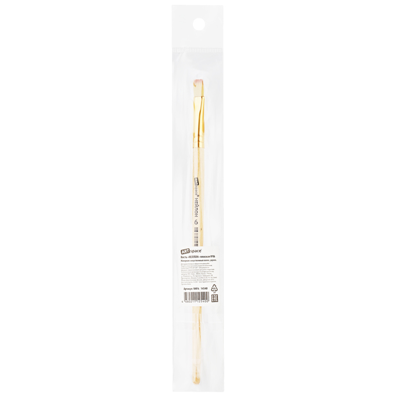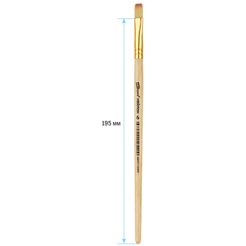 Художественная кисть ArtSpace из нейлона - это недорогой вариант для школьников, где редко пользуются акрилом и маслом, чаще гуашью и акварелью. Она идеальна для начинающих художников, поэтому их часто используют в детских образовательных учреждениях. Кисть плоской формы с короткой ручкой из дерева также подходит для малышей. <br/>• Волос: нейлон; <br/>• Номер: 6;<br/>• Форма кисти: плоская;<br/>• Тип ручки: короткая;<br/>• Материал ручки: дерево.
