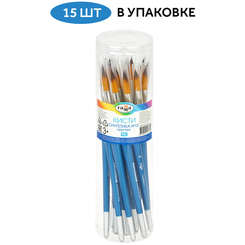 Художественные кисти ГАММА серии «Классическая» идеально подходят для детского творчества. Кисть круглой формы № 12 с короткой ручкой из берёзы, покрытой глянцевым лаком. <br/>Кисти из синтетического волоса серии «Классическая» являются аналогом кистей из натурального колонка и белки по параметрам жёсткости и эластичности. Синтетический волос на основе сложных полиэфирных волокон имеет гладкую структуру и обладает капиллярным эффектом, что позволяет использовать такие кисти при работе с акварелью. Кисть представлена с цельнометаллической никелированной бесшовной обоймой, обеспечивающей надёжное соединение ручки и волосяного пучка.<br/>• Номер: 12;<br/>• Форма кисти: круглая;<br/>• Волос: синтетика;<br/>• Тип ручки: короткая;