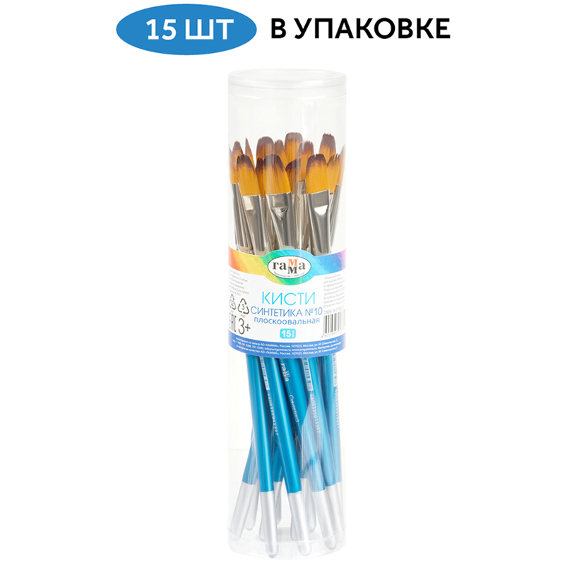 Художественные кисти ГАММА серии «Классическая» идеально подходят для детского творчества. Кисть плоскоовальной формы № 10 с короткой ручкой из берёзы, покрытой глянцевым лаком. <br/>Кисти из синтетического волоса серии «Классическая» являются аналогом кистей из натурального колонка и белки по параметрам жёсткости и эластичности. Синтетический волос на основе сложных полиэфирных волокон имеет гладкую структуру и обладает капиллярным эффектом, что позволяет использовать такие кисти при работе с акварелью. Кисть представлена с цельнометаллической никелированной бесшовной обоймой, обеспечивающей надёжное соединение ручки и волосяного пучка.<br/>• Номер: 10;<br/>• Форма кисти: плоскоовальная;<br/>• Волос: синтетика;<br/>• Тип ручки: короткая;