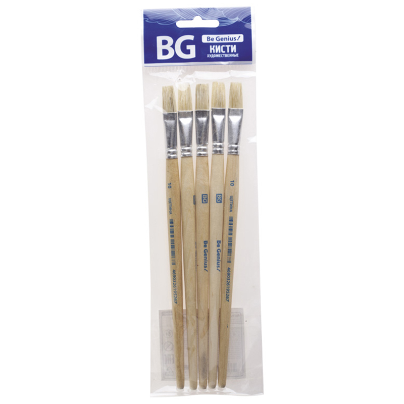 Кисти НАБОР 5 шт. (ПОНИ круглые № 1, 4; КОЗА круглые № 3, 6; ЩЕТИНА плоская № 4), пакет, ЮНЛАНДИЯ, 201079