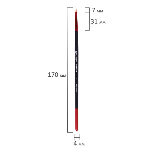 Кисть с круглой формой пучка № 1 позволит прорисовывать мелкие детали. Изготовлена с применением высококачественной синтетики. Синтетика превосходит щетину в легкости очистки и износостойкости, а упругость ворса и прекрасные впитывающие свойства пучка обеспечивают идеальное сохранение формы мазка. Ручка из древесины покрыта лаком, что защищает ее от воздействия красок и влаги – кисть долговечна и надежна. Номер кисти соответствует реальной ширине пучка в миллиметрах.