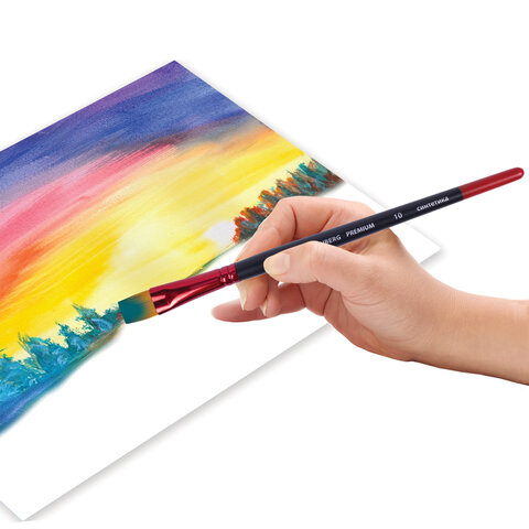 Кисть с плоской формой пучка № 10 позволит прорисовывать детали и наносить крупные мазки и линии. Изготовлена с применением высококачественной синтетики. Синтетика превосходит щетину в легкости очистки и износостойкости, а упругость ворса и прекрасные впитывающие свойства пучка обеспечивают идеальное сохранение формы мазка. Ручка из древесины покрыта лаком, что защищает ее от воздействия красок и влаги – кисть долговечна и надежна. Номер кисти соответствует реальной ширине пучка в миллиметрах.