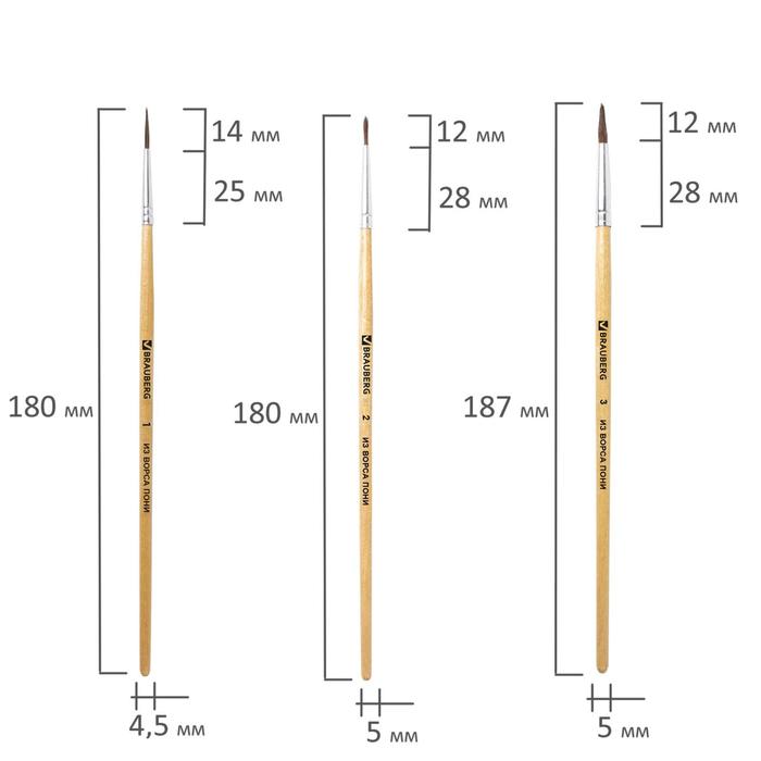 Кисть для рисования набор 3 шт. пони круглые № 2,3,4 «Ван Гог»