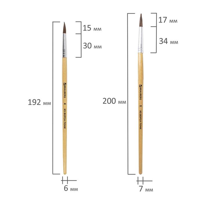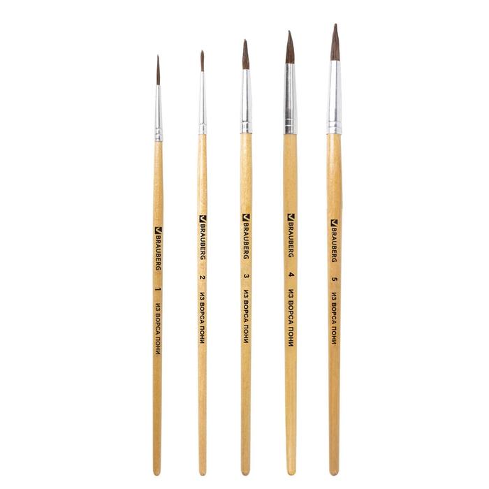 Кисть для рисования набор 5 шт. пони круглые № 1,2,3,4,5 «Климт»