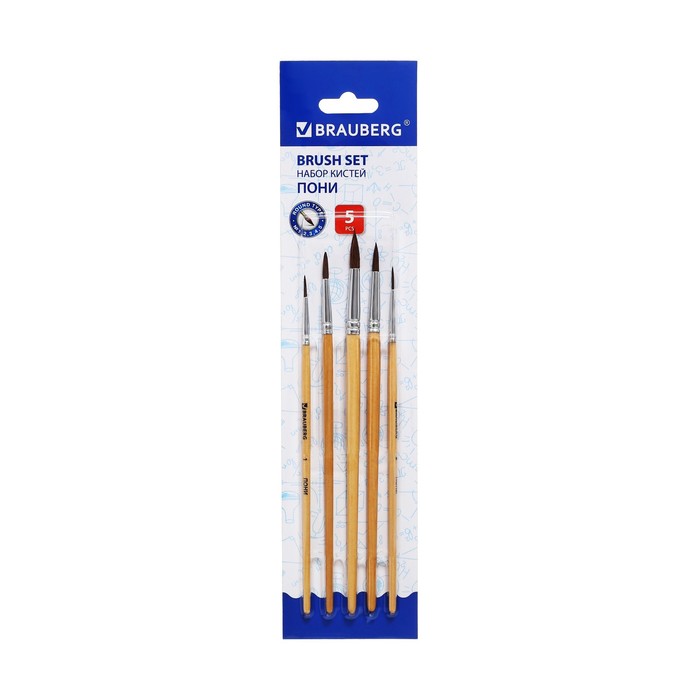 Кисть для рисования набор 5 шт. пони круглые № 1,2,3,4,5 «Девушка с серёжкой»