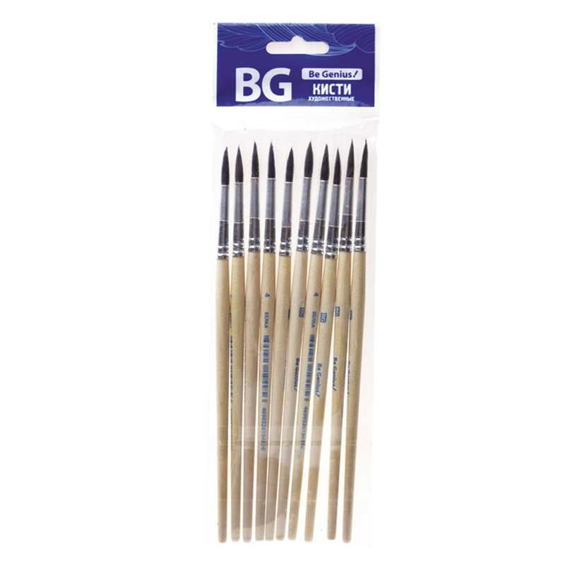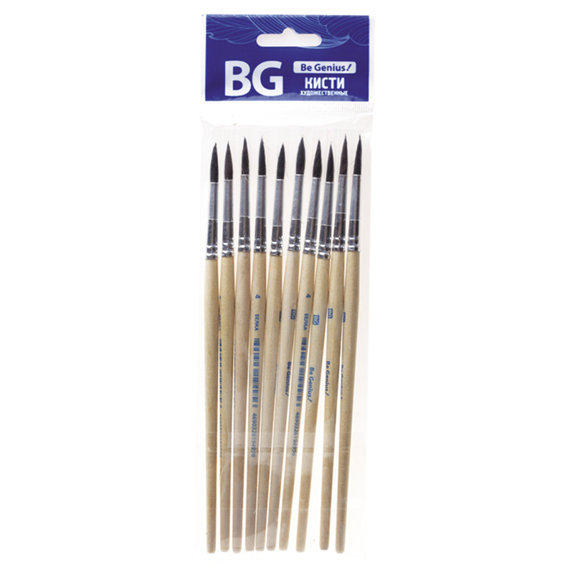 Художественные кисти BG изготовлены из натурального ворса белки в круглой форме. Номер кисти – 4. Она прекрасно удерживает краску, а мягкий волос сохраняет форму пучка и позволяет наносить различные штрихи. Короткая ручка выполнена из натурального необработанного дерева.<br/>• Номер: 4;<br/>• Форма кисти: круглая;<br/>• Волос: белка;<br/>• Тип ручки: короткая.