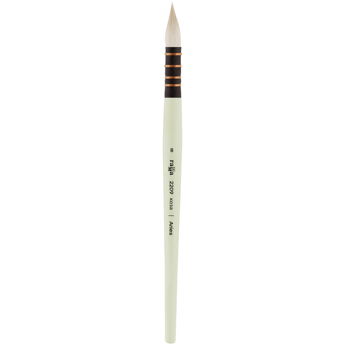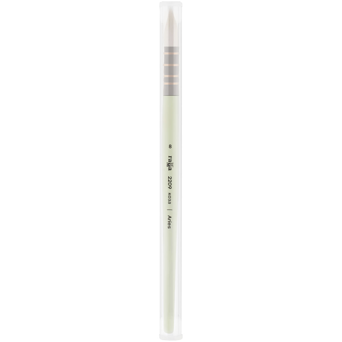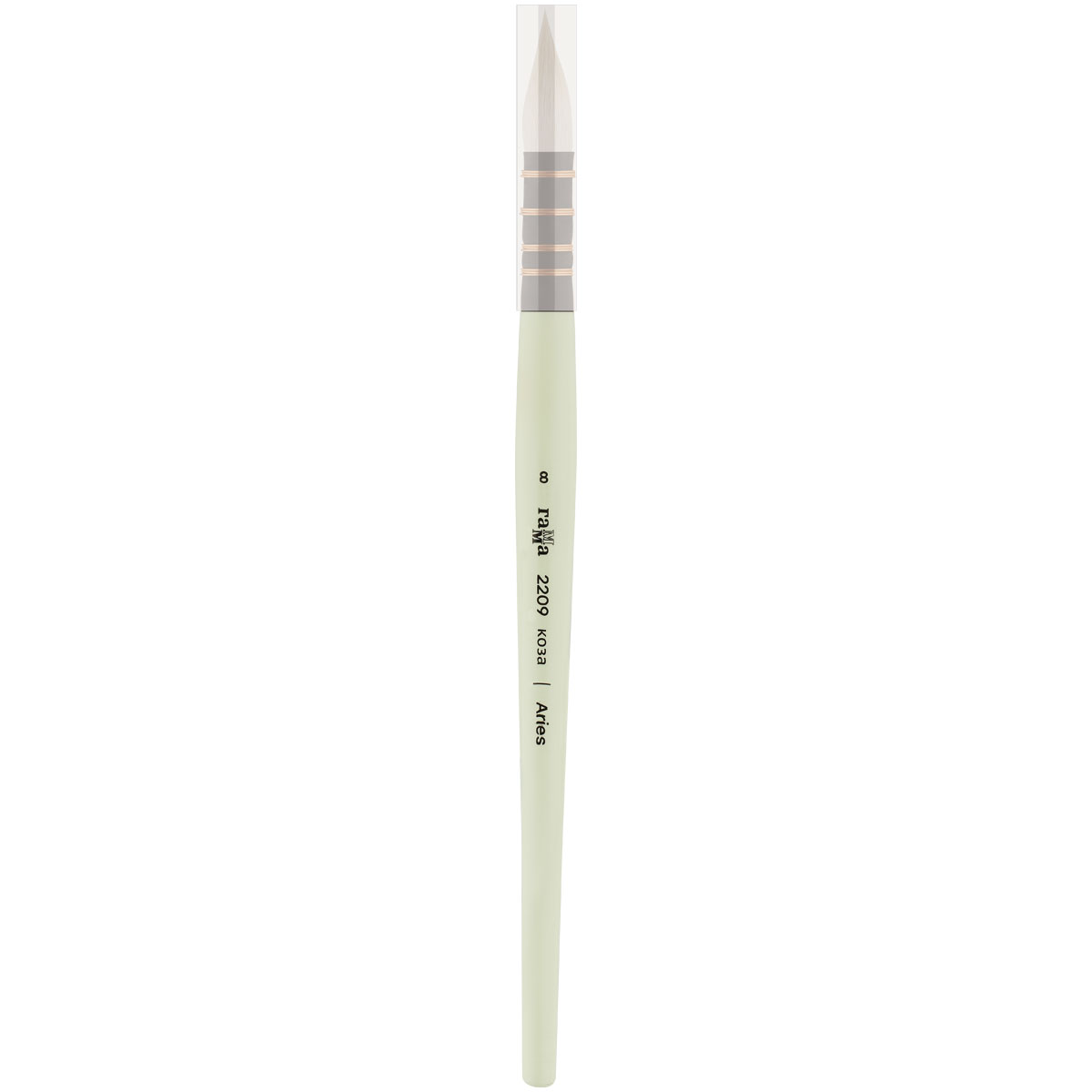 Художественная кисть ГАММА серии Aries № 8 круглой формы создана, чтобы привлекать внимание. Она выполнена из белого волоса козы и имеет короткую деревянную ручку нежно-зеленого цвета из берёзы – стильное сочетание для эстетичных фото и видео. Ширина – 8,5 мм, а выставка – 27 мм. Для набивки пучка кистей с французским креплением используется микс козьего волоса разной мягкости. Это делает кисть очень управляемой, в меру мягкой и достаточно упругой. За счет особенностей крепления она набирает наибольшее количество воды и долго отдает в процессе работы. Плотная набивка пучка позволяет делать заливки, а тонкий кончик – прорисовывать тончайшие детали. Кисть упакована в пластиковую тубу.<br/> • Номер: 8;<br/> • Форма кисти: круглая, французское крепление;<br/> • Волос: коза;<br/> • Тип ручки: короткая;<br/> • Ширина: 8,5;<br/> • Выставка: 27