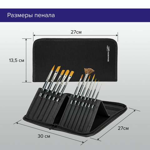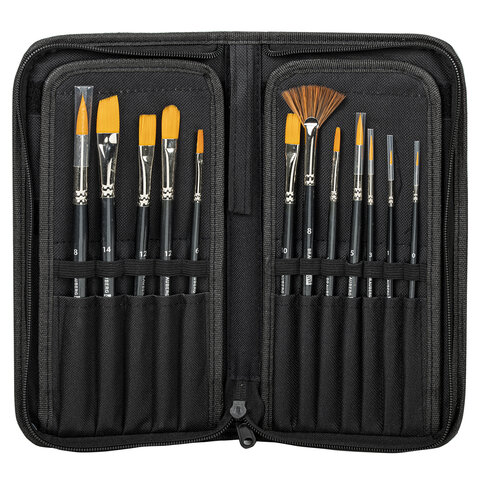 УЦЕНКА - Набор художественных кистей синтетика Гамма "Модерн", 12шт., тканевый пенал, блистер, европодвес