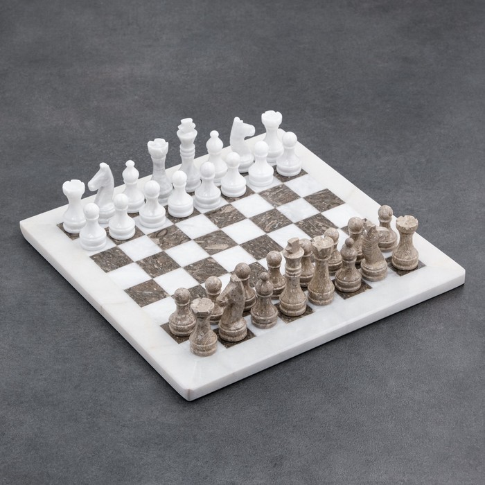 Шахматы «Элит», серый/белый, доска 30х30 см, оникс