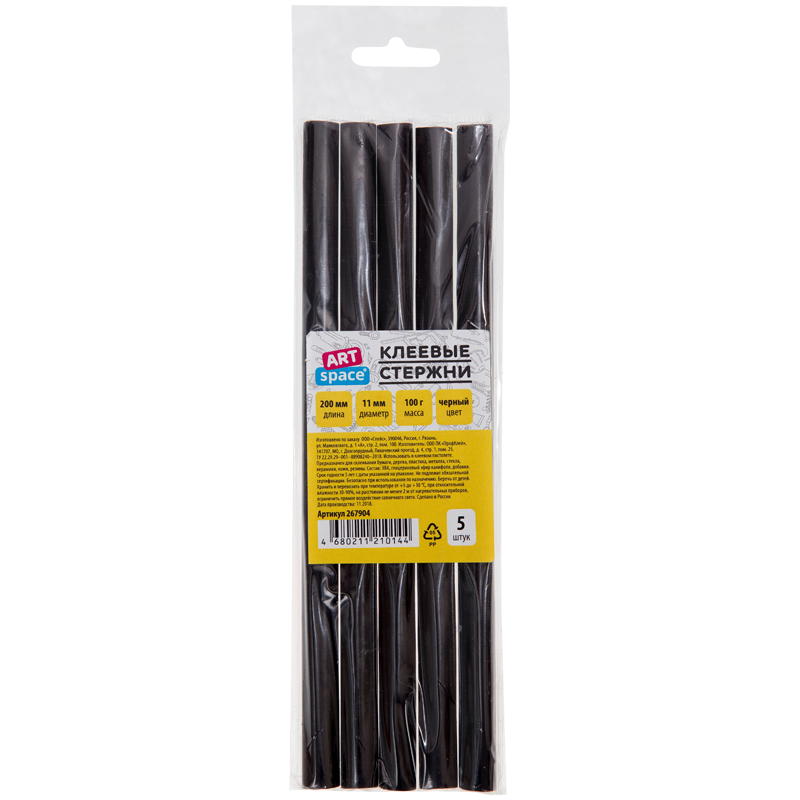 Клеевые стержни ArtSpace, диаметр 11мм, длина 200мм, черные, набор 5шт., европодвес
