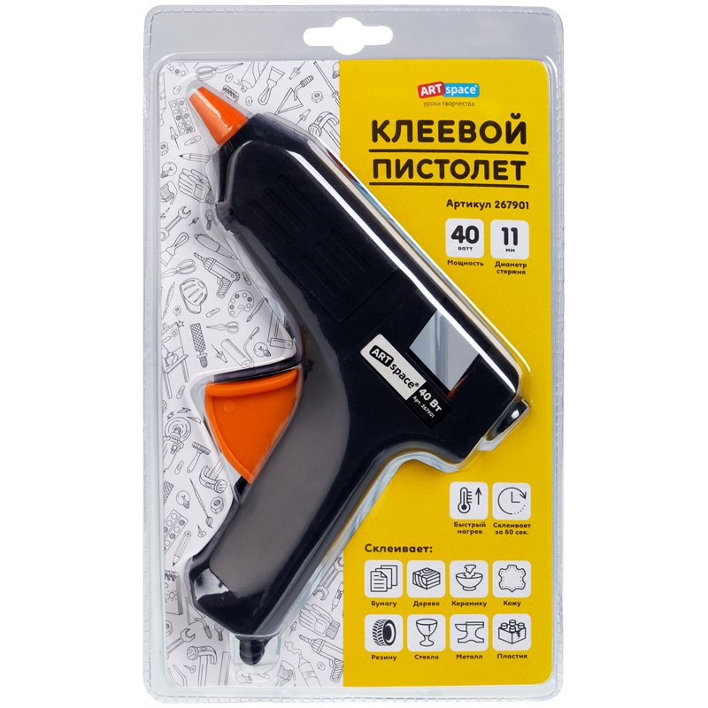 Клеевой пистолет ArtSpace, 40Вт для стержня 11мм, блистер