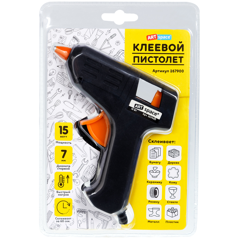 Клеевой пистолет ArtSpace, 15Вт для стержня 7мм, блистер