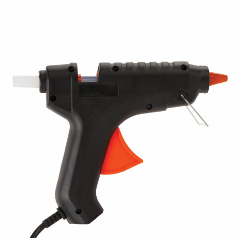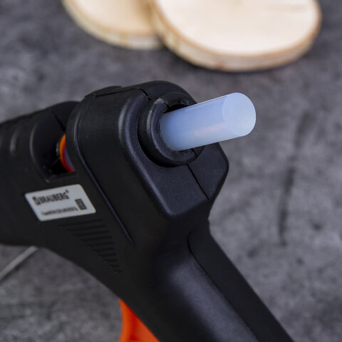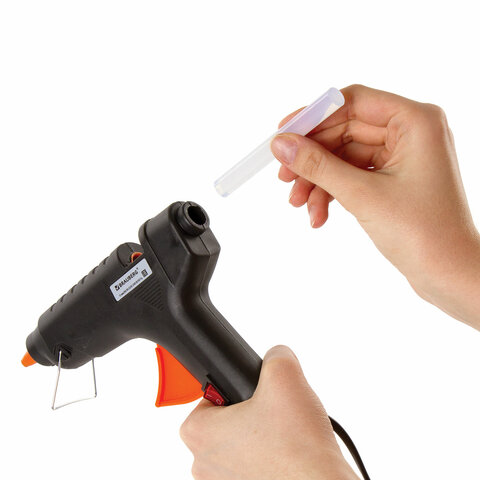Принцип работы: клеевой стержень плавится в металлической камере с помощью нагревательного устройства, а при нажатии на курок происходит дозирование, и клей подаётся из сопла на склеиваемую поверхность.