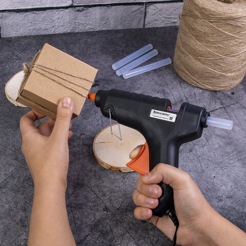 Клеевой пистолет BRAUBERG предназначен для прочной фиксации поверхностей с помощью расплавленной клеевой массы. Является одним из главных помощников в творчестве для изготовления разнообразных поделок, а также в быту для склеивания мелких деталей.