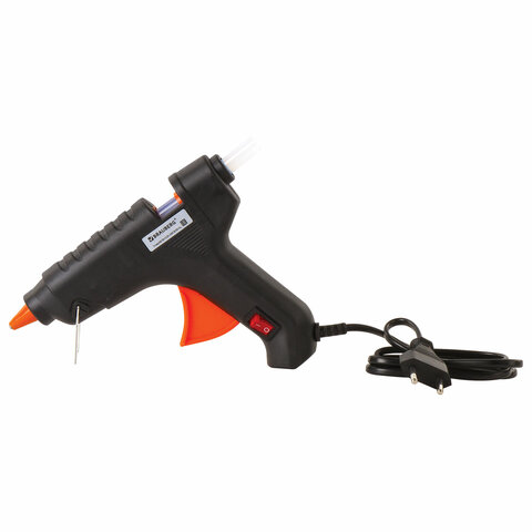 С его помощью можно склеить дерево, пластик, резину, кожу, стекло, металл, ткань, пенопласт, керамику, картон, бумагу, цветы и прочие материалы. Заправляется специальным клеевым стержнем диаметром 11 мм. Клеевой пистолет мощностью 60 Вт работает от сети и дополнительно имеет кнопку отключения, которая позволяет не выключать пистолет из розетки во время паузы в работе. Производительность 12 г/мин обеспечивает непрерывную подачу клея.