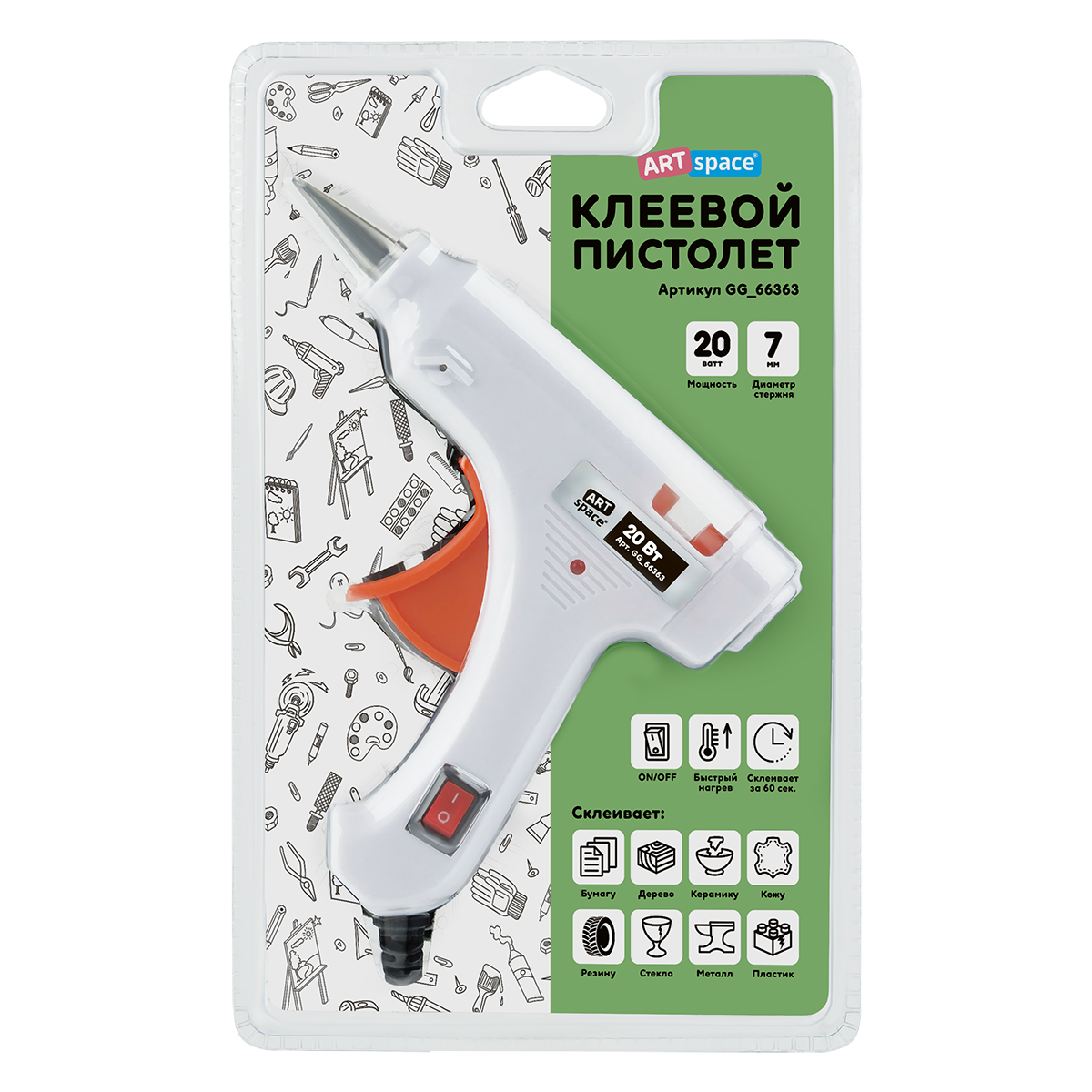 Клеевой пистолет ArtSpace, 20 Вт для стержня 7мм, блистер, выключатель