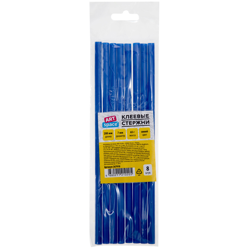 Клеевые стержни ArtSpace, диаметр 7мм, длина 200мм, синие, набор 8шт., европодвес