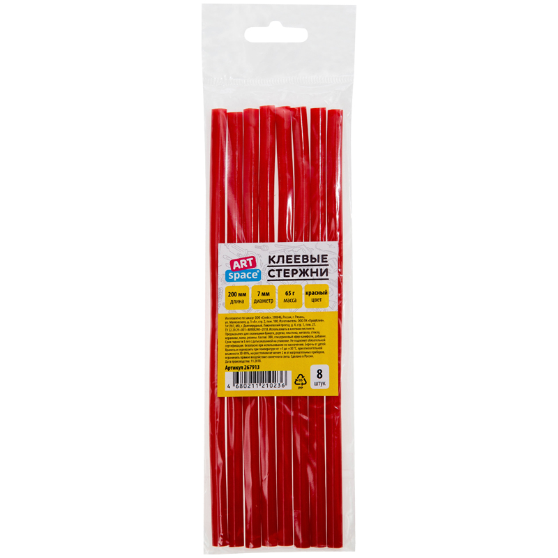 Клеевые стержни ArtSpace, диаметр 7мм, длина 200мм, красные, набор 8шт., европодвес
