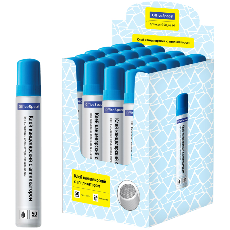 Клей канцелярский OfficeSpace, с аппликатором, 50г