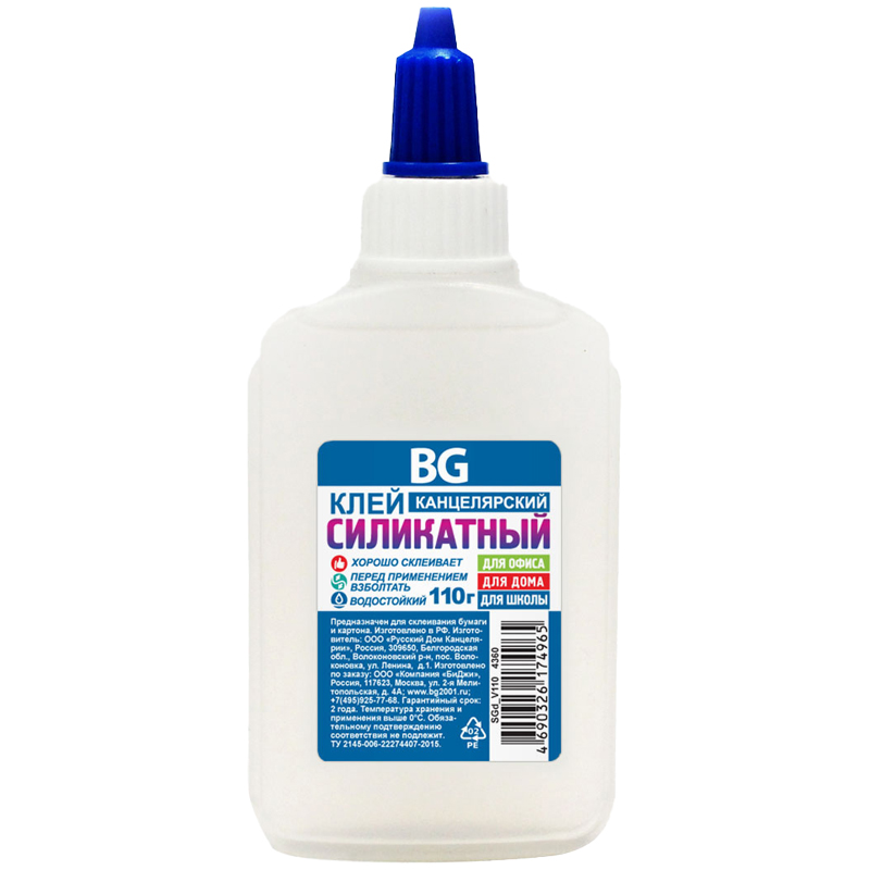 Клей канцелярский BG, силикатный с дозатором, 110г.