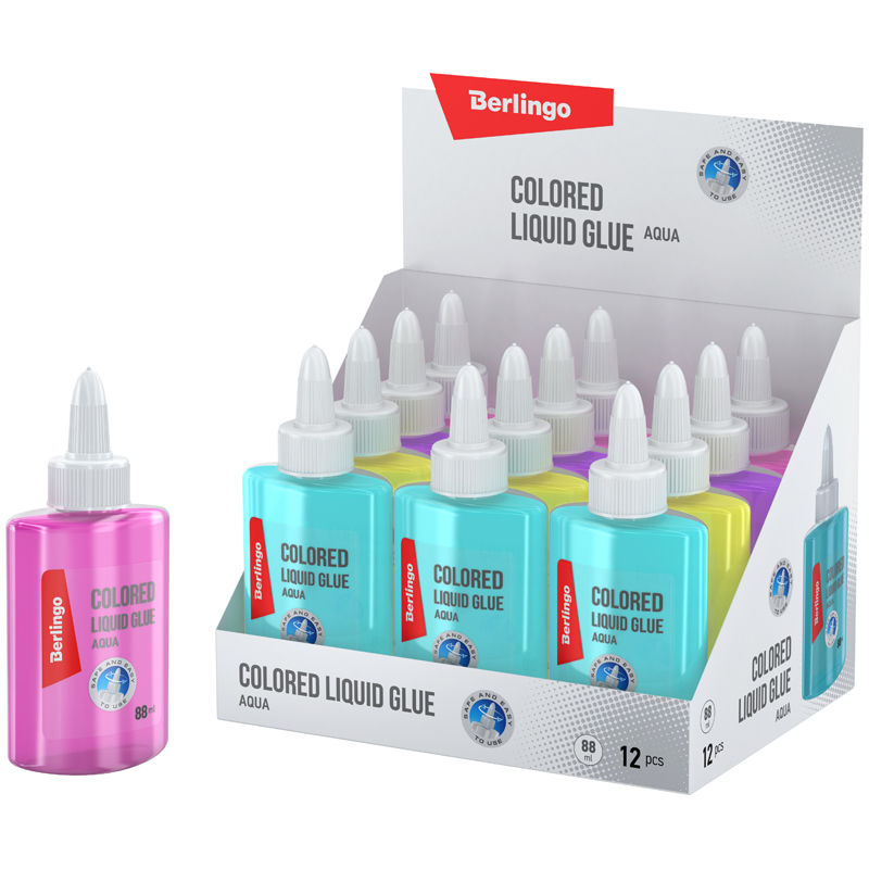 Клей канцелярский Berlingo "Aqua", 88мл, ассорти полупрозрачных цветов