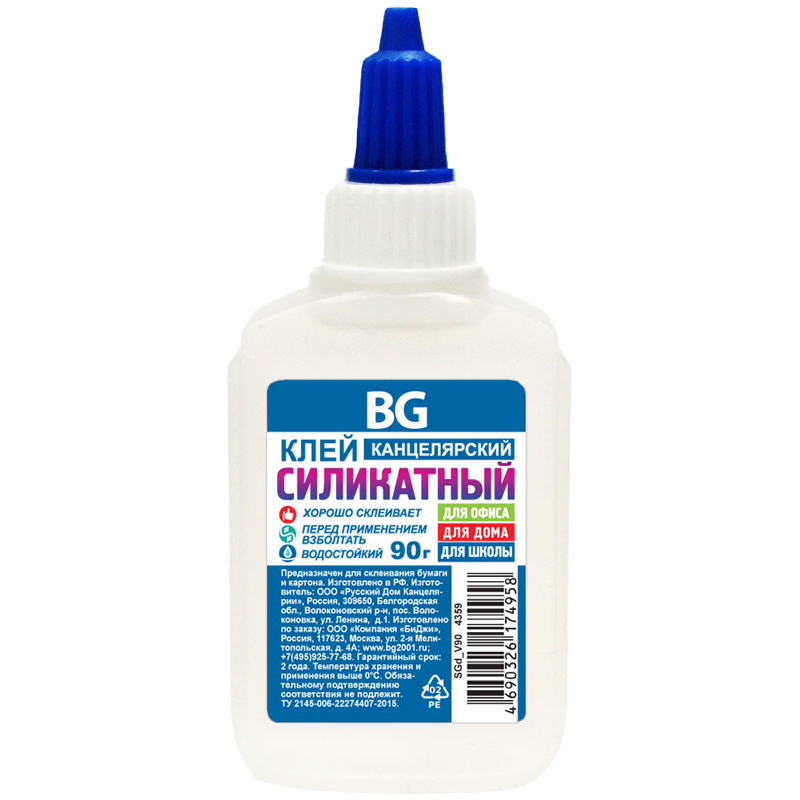 Клей канцелярский BG, силикатный с дозатором, 90г.