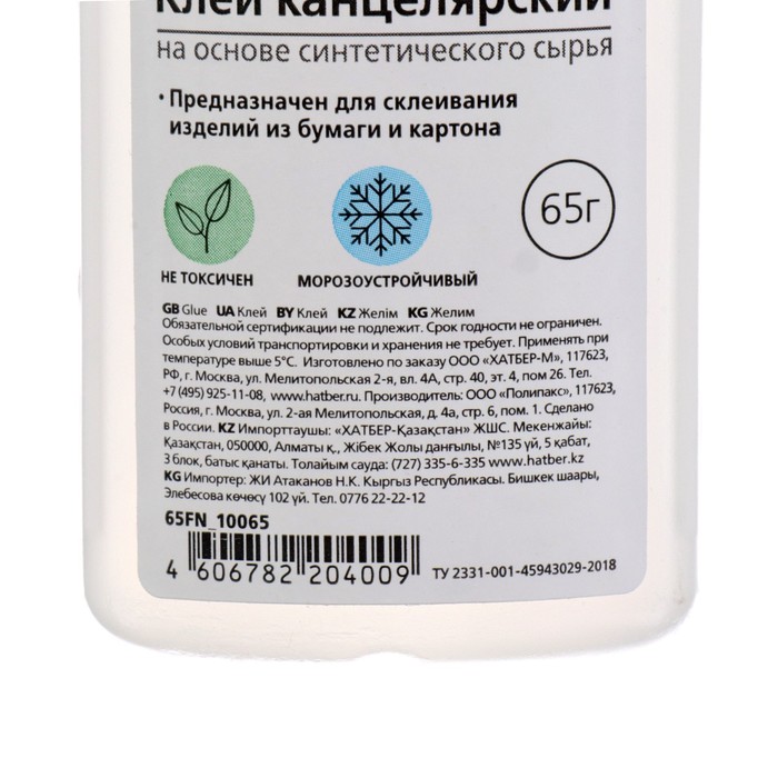 Клей канцелярский 50 грамм "Calligrata" густой, с силиконовым аппликатором