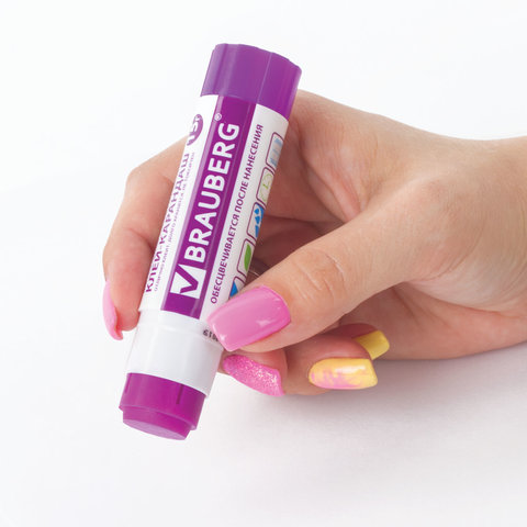 Обесцвечивающийся клей-карандаш BRAUBERG помогает аккуратно и равномерно нанести клеевой слой на поверхность. Идеально подходит для офиса, дома и школы.