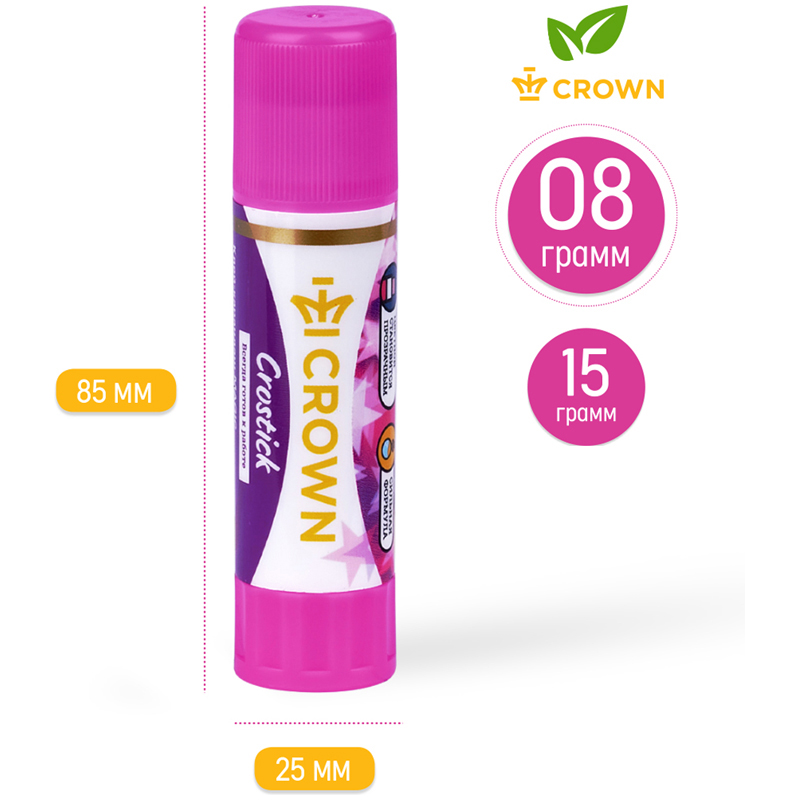 Клей-карандаш 8г. Клей содержит специальный цветной пигмент, поэтому след от карандаша хорошо виден при нанесении. По мере высыхания клея пигмент обесцвечивается. Предназначен для склеивания всех видов бумаг, картона, фотографий. Не токсичен, не содержит растворителей. Надежный колпачок предохраняет от высыхания.