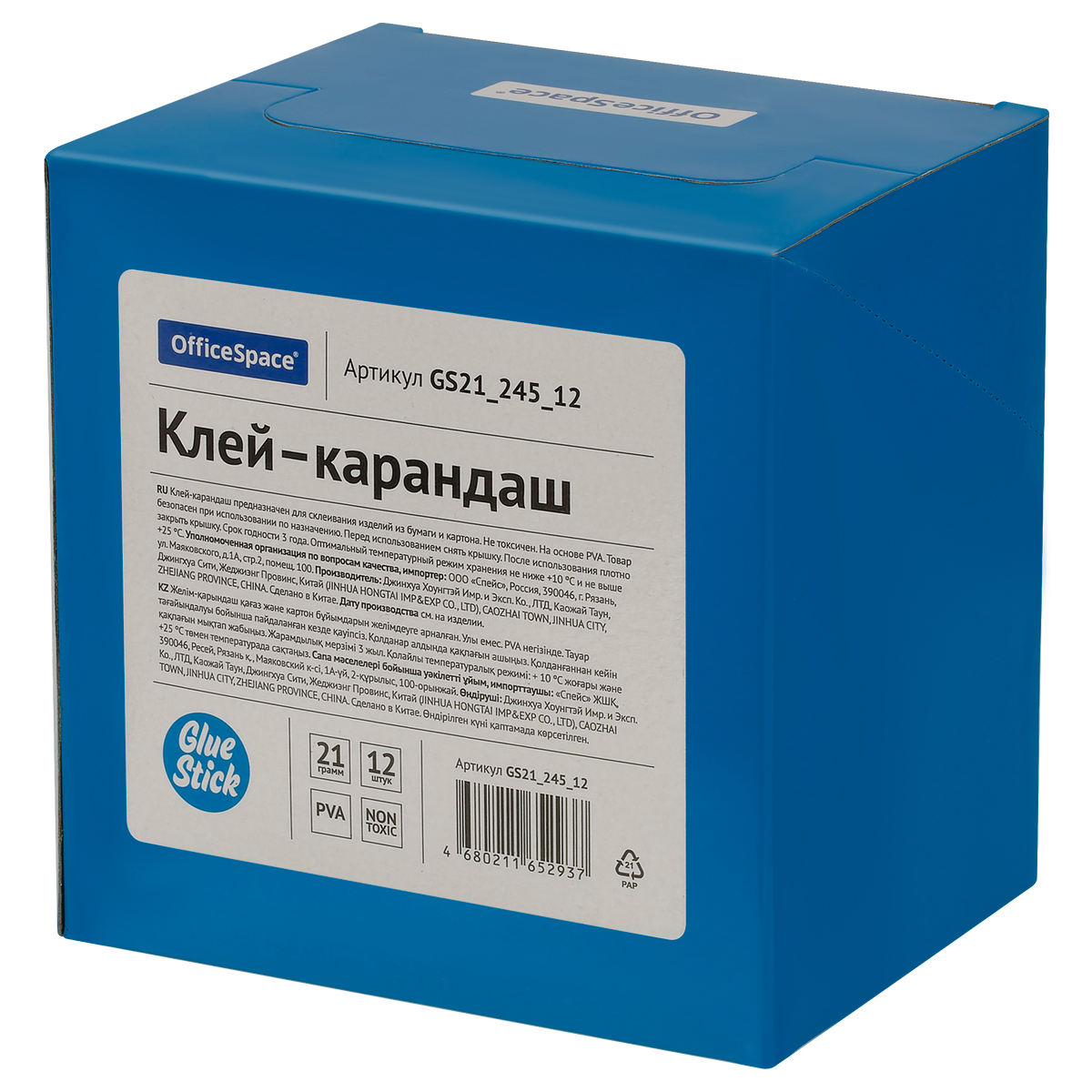 Канцелярский клей-карандаш OfficeSpace незаменим для использования в школе, офисе и доме. В наборе 12 штук клея для бумаги и картона по 21 гр. Продукт на ПВА основе не токсичен, не имеет резкого и неприятного запаха, легко наносится тонким прозрачным слоем, не пачкает руки и не оставляет следов. Плотный колпачок защитит клей от высыхания. Это лучший выбор как для детского творчества, так и для повседневной работы с документами. Школьный клей в стике можно использовать для учебы, творчества и рукоделия. Он подходит как для мальчиков, так и для девочек, поместится в ранце или рюкзаке и всегда будет под рукой благодаря компактному размеру. Данный клей для поделок отлично подойдет для учебных заданий в школе: склеивания аппликаций, фотографий, для изготовления приглашений, открыток, скрапбукинга. Он удобен для точных работ и склеивания различных деталей. Срок годности - 3 года.