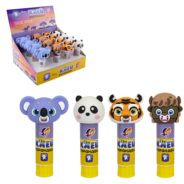 Клей-карандаш " Луч " Zoo 9гр, ассорти 4 дизайна (без возможности выбора дизайна), основа PVP, картонный дисплей