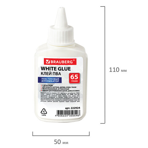 Клей ПВА BRAUBERG предназначен для склеивания бумаги, картона, фотографий, дерева и кожи.