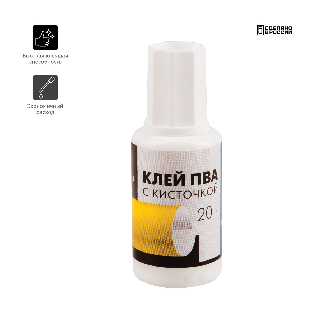Клей ПВА УСИЛЕННЫЙ 20 г с кисточкой (бумага, фотографии, картон, дерево), BRAUBERG Extra, 272998