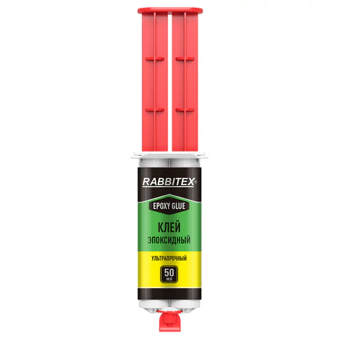 Клей эпоксидный прозрачный, смола + отвердитель, шприц, насадка миксер, лопатка, 2х25 мл, RABBITEX (РАББИТЕКС) "ДВА СЛОНА", 609809