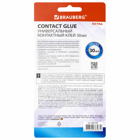 Универсальный клей BRAUBERG EXTRA подходит для широкого спектра работ. Применяется для склеивания изделий из дерева, металла, жесткого ПВХ, резины, кожи, войлока и других материалов.
