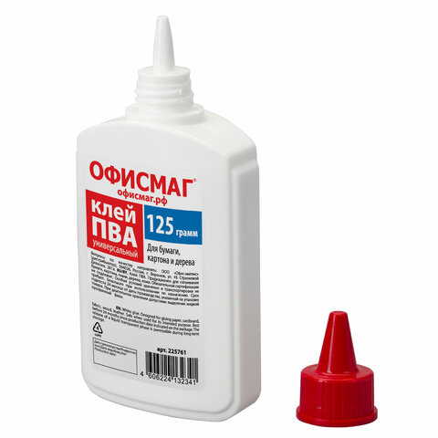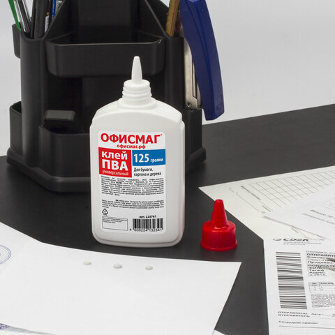 Клей ПВА ОФИСМАГ предназначен для склеивания бумаги, картона, фотографий, дерева.