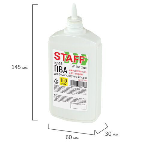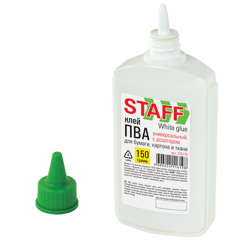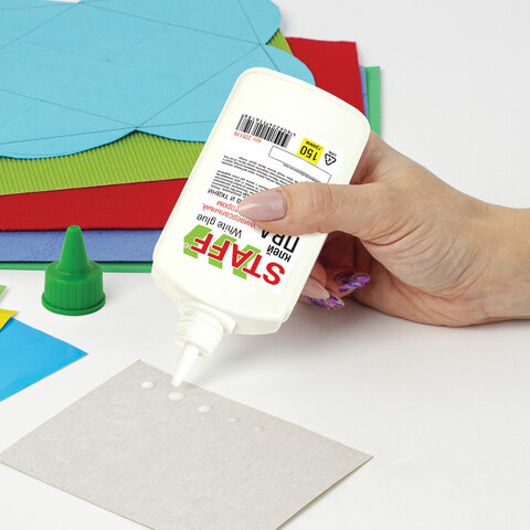 Клей ПВА STAFF применяется для склеивания бумаги, картона, фотографий, дерева.