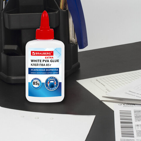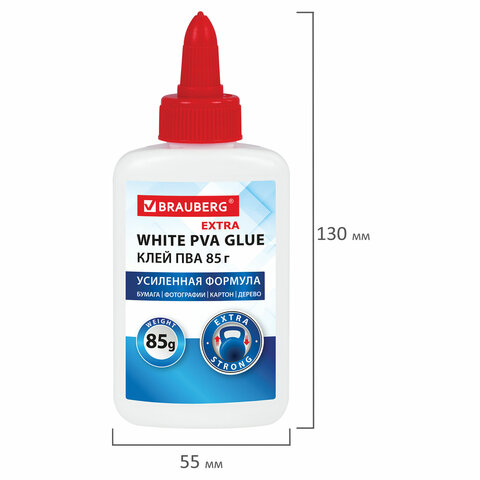 Клей ПВА BRAUBERG Extra предназначен для склеивания изделий из бумаги, картона, фотографий, дерева.