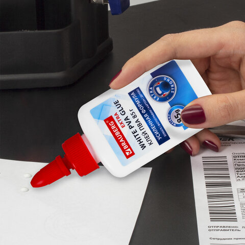 Аккуратное нанесение обеспечивается дозатором с колпачком, который надежно предохраняет клей от высыхания. Благодаря усиленной формуле клей подходит для склеивания не только бумаги и картона, но и для дерева, ткани, фотобумаги. Клей безопасен для здоровья.
