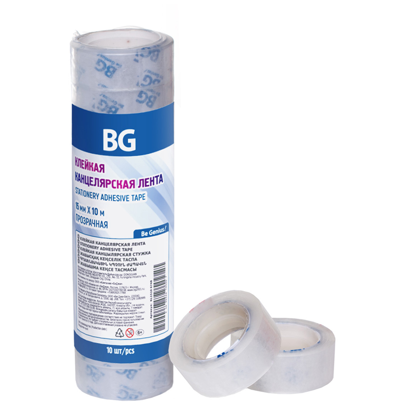 Клейкая лента BG разработана специально для канцелярских нужд. Она обладает исключительной прозрачностью и прочностью при минимальной толщине, не изменяет свой цвет в процессе хранения, не подвергается окислению и старению. Основа из двуосноориентированного полипропилена. Клеевой слой - акриловая эмульсия на водной основе 38 мкм. Ширина ленты 19 мм, длина 10 м. В наборе 8 штук