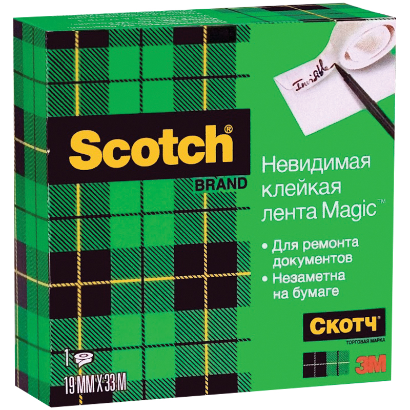 Идеальна для ремонта поврежденных бумажных документов, а также книг, купюр, фотографий (с тыльной стороны), так как становится практически невидимой на большинстве видов бумаги. Рекомендуется для детского творчества и поделок. Обладает высокой клейкостью: 25 кг/м - предназначена для постоянного приклеивания к бумаге. При этом допускается временное приклеивание к твердым поверхностям с последующим отклеиванием без следа в течение 14 суток. Основа из ацетата целлюлозы: долговечного, родственного бумаге материала с прочностью 4,4 кг и низким удлинением до разрыва 35% - лента не вытягивается ни не расщепляется при разматывании, но при необходимости легко и ровно отрывается руками. Эргономичная толщина ленты 56 мкм: легко найти и отделить конец ленты, а также удерживать кусочки ленты в процессе использования. Имеет специальное матовое покрытие, благодаря которому лента разматывается бесшумно, равномерно с усилием не более 150 г., а значит подойдет для установки в настольные диспенсеры. Допускает нанесение надписей на поверхности практически любыми пишущими принадлежностями. Стойкая к большинству растворителей, безопасна для фотобумаги. Ширина ленты: 19 мм, длина намотки: 33 м, втулка из пластика: диаметр 25,4 мм. Поставляется в упаковке из вторично-переработанного картона. Лента безопасна для окружающей среды: при попадании в почву быстро разлагается. Пластиковый сердечник и упаковка допускают вторичную переработку. Обладает исключительной стойкостью к старению: не желтеет и не теряет своих свойств со временем. Срок годности - не ограничен, особых условий хранения не требуется, сертификации не подлежит. Оригинальное применение: мастера маникюра используют эту ленту для получения четкой границы между лаком разного цвета, а специалисты по ремонту электроники — для захвата и перемещения мелких деталей и микросхем.