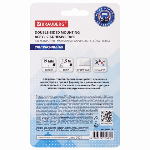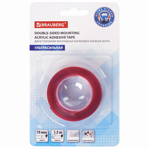 Двухсторонняя монтажная клейкая лента BRAUBERG применяется для ремонтных и строительных работ, крепления аксессуаров и прочей фурнитуры к различным типам поверхностей, в том числе стеклянных.
