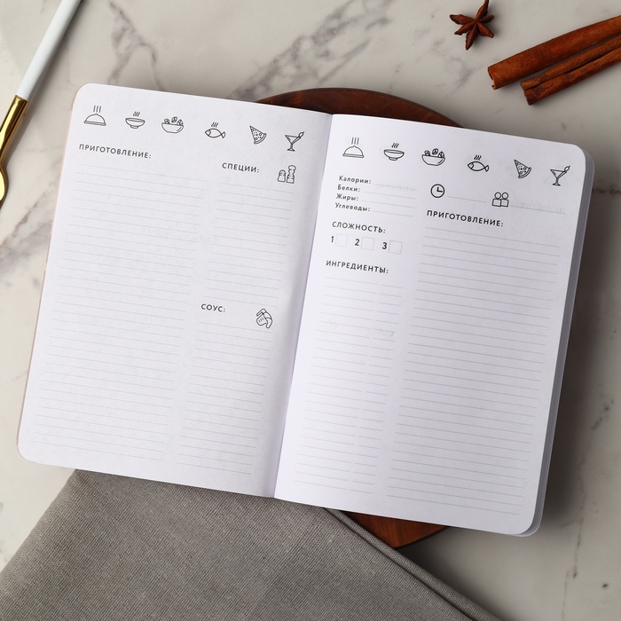 Книга для записи рецептов А5, 80 л. Твердый переплет «Моя книга рецептов»