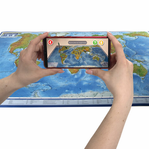 Окунитесь в волшебный мир вместе с интерактивной картой мира BRAUBERG благодаря приложению IQ Globe!