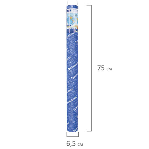Настенная физическая карта мира с масштабом 1:37 000 000 обладает размером 101х69 см. Выполнена из ламинированной бумаги плотностью 170 г/м2. Поставляется в тубусе.