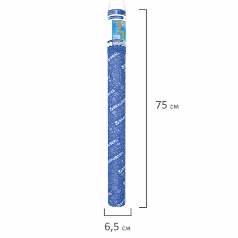 Настенная карта мира с масштабом 1:32 000 000 обладает размером 101х70 см. Выполнена из ламинированной бумаги плотностью 170 г/м2. Поставляется в тубусе.