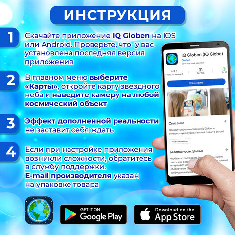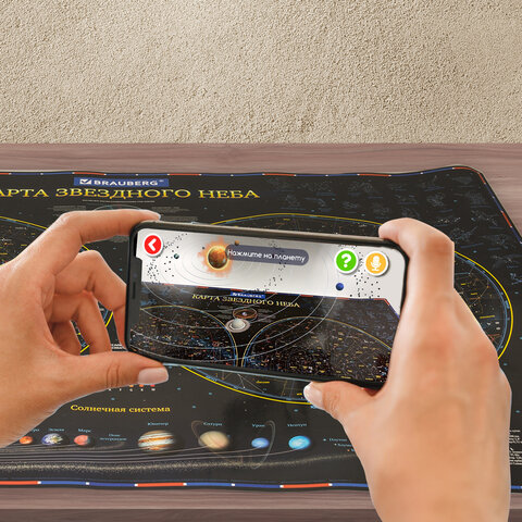Окунитесь в волшебный мир вместе с интерактивной картой "Звездное небо и планеты" BRAUBERG благодаря приложению IQ Globen!