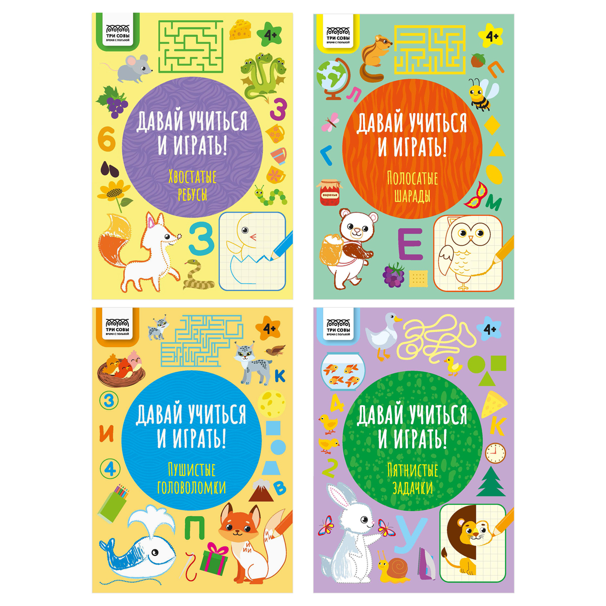 Книжка-задание, А4 ТРИ СОВЫ "Давай учиться и играть. 4+", 16стр.